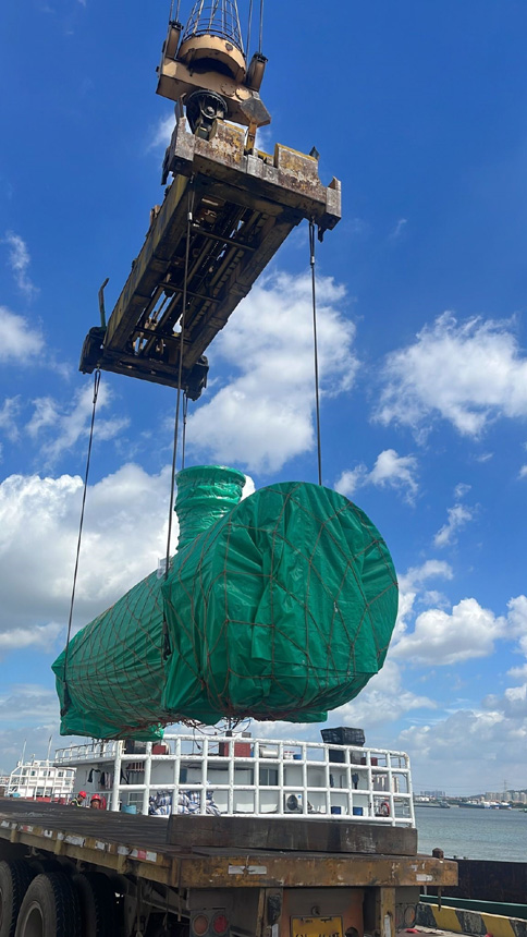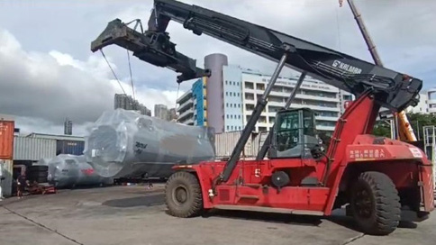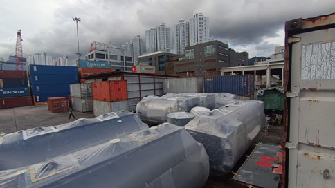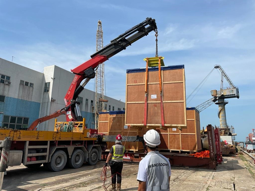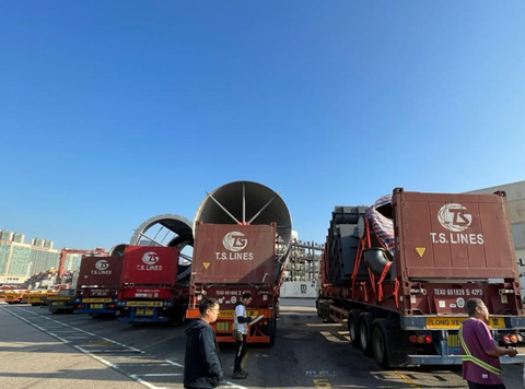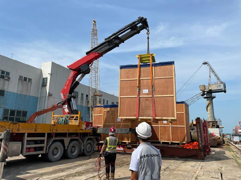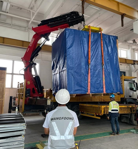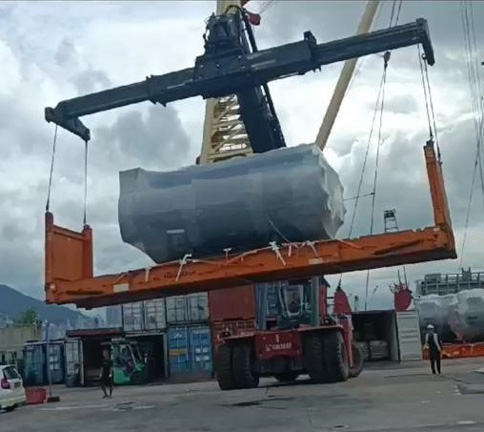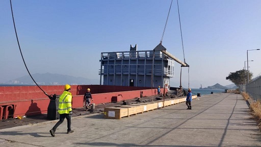 Wangfoong (Hong Kong) delivered boilers and the parts to North Lantau Hospital. With own asset of barge and wharf, we collected the OOG FR from terminal with barge and perform unstuffing in our wharf for last mile delivery. This can give client a cost-saving option and operations can be under control, e.g. delivery to the site with specific unloading sequence.