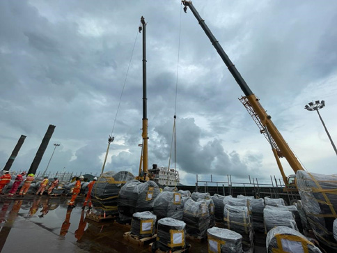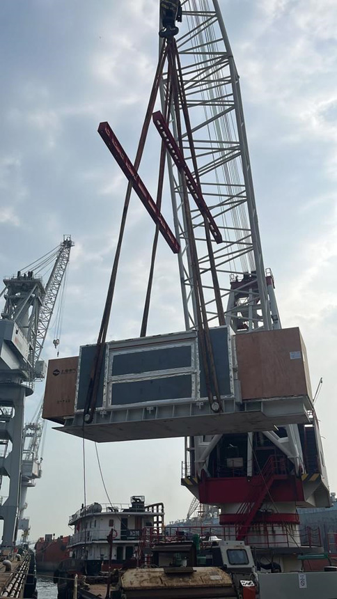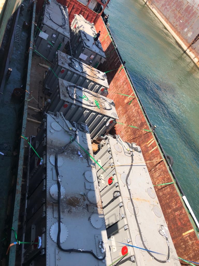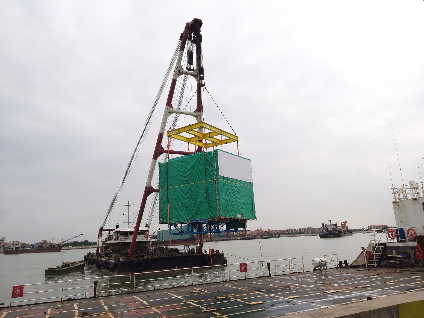 - Transformers and reactors loaded by floating crane barge onto the SPMT at Macau port