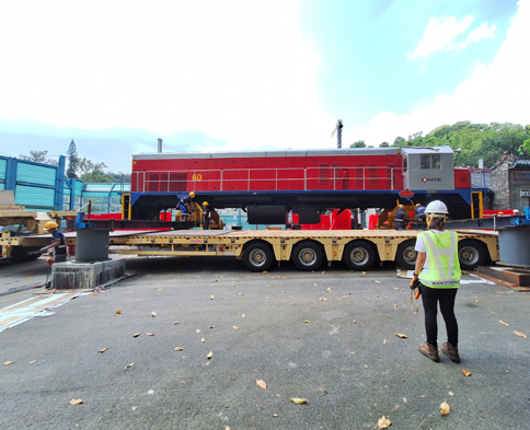 To overcome height restrictions added by the locomotive, we arranged low-bed trailer and practiced night operation under convoy. Prior to transportation, project supervisor and engineer carried out final checking to ensure that all equipment and lashing functioned properly. All technical operations have undergone thorough site investigation, planning, simulations, and full sets of endorsed method statement.