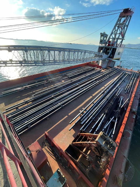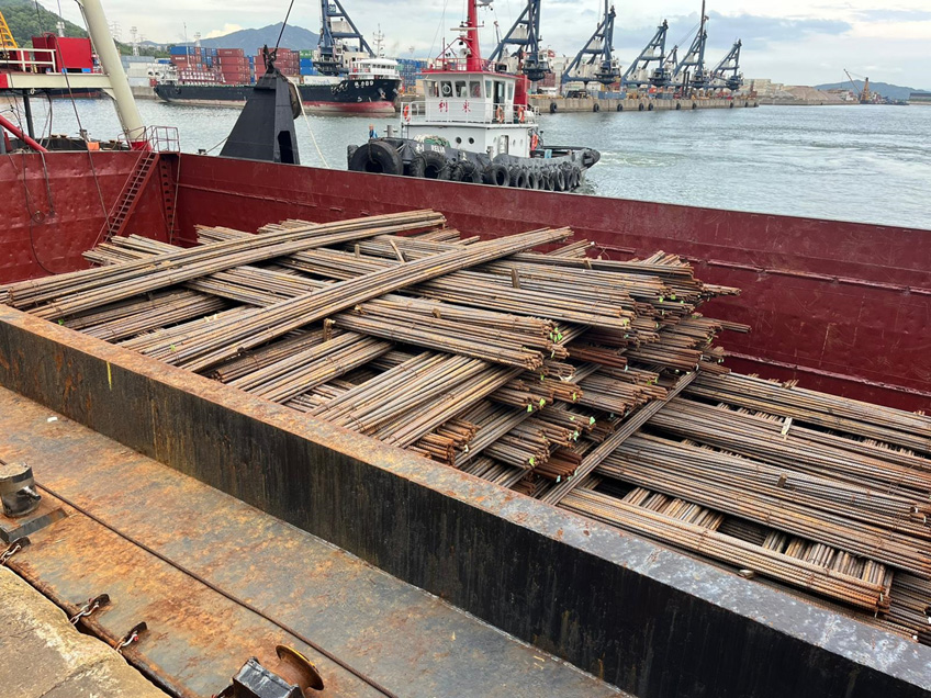 8200 MT Steel Rebar receiving, storage, barge service transport to Hong Kong mid-steam (Aug 2024).