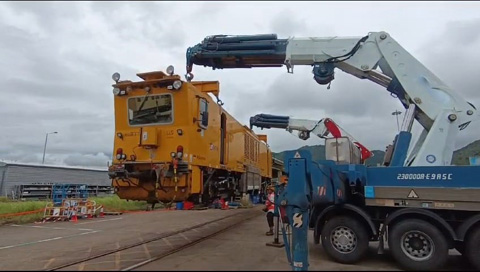 Lifting operation to turnaround 3 wagons (Apr 2019)