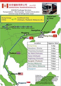 New transportation route of ASEAN area, including transportation, warehousing and custom declaration for both general and refrigerated cargo.
