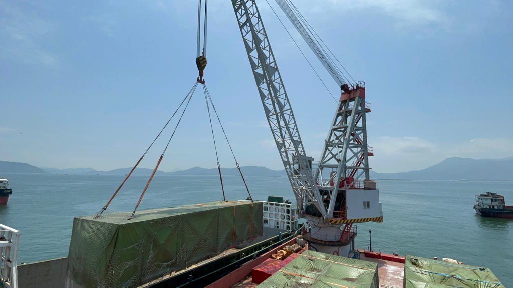 Wangfoong provided barge and performed mid-stream operation in Hong Kong, to receive and deliver a batch of oversized shipment in one go.