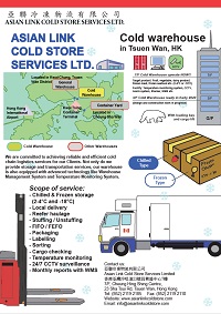 Our newly opened cold storage with chilled (2-4 ¢X C) and frozen (-18 ¢X C)storage facility and cold truck for local distribution.We offerintegrated one-stop cold chain storage service, including: