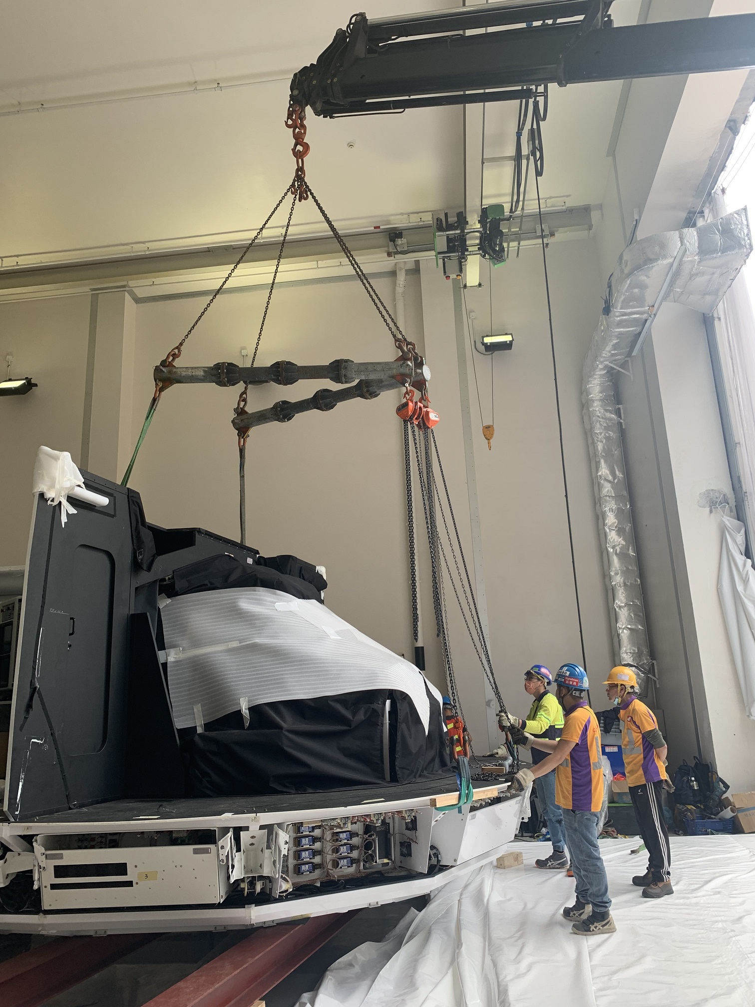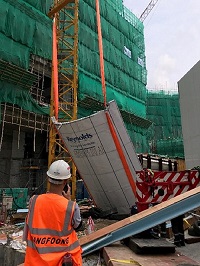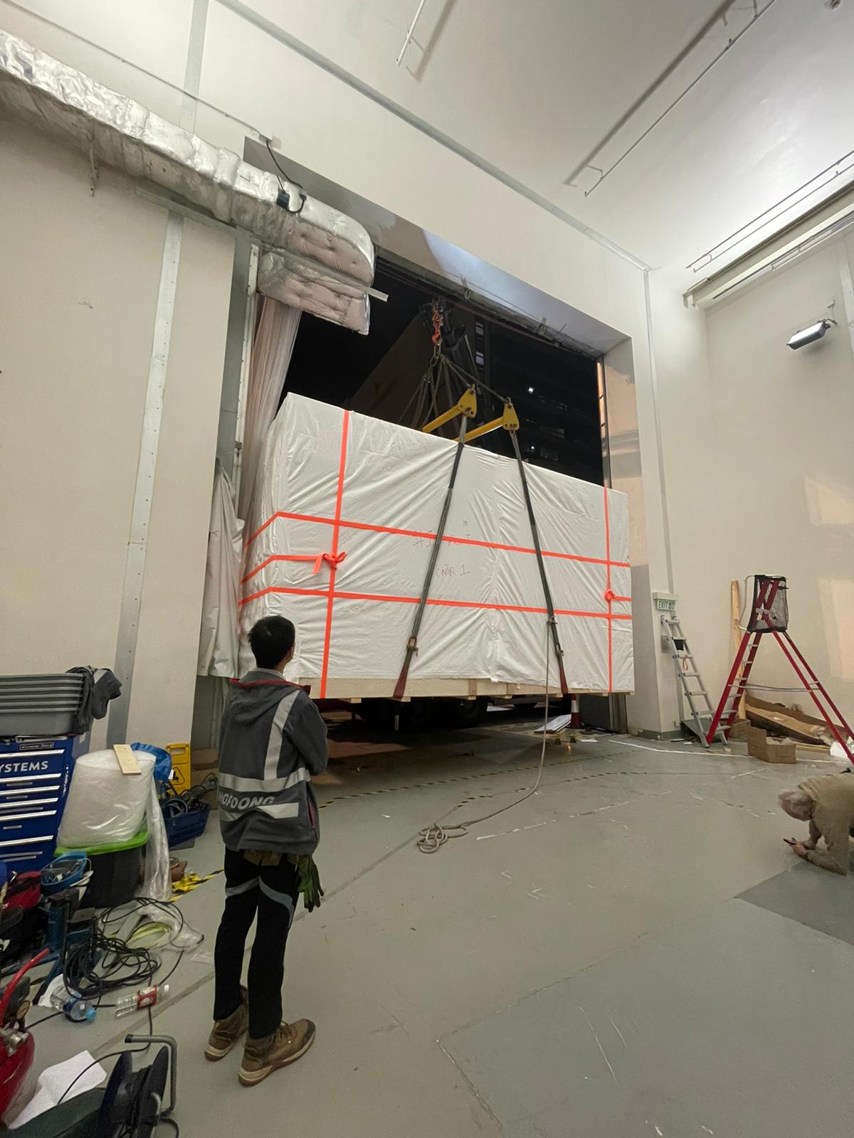 Apart from space limitation in unloading site,oversized a cargo structure increased the relocation challenges. After comprehensive site investigation and discussion with the client, our transport team arranged a 300-ton terrain crane for unloading to overcome the height restrictions. To reduce the risks on road traffic, our transport team practiced multi-modal transportation, delivering the Acrylic Panels by a barge from Kowloon to HK Island. Traffic simulation were carried out before actual delivery. All technical operations have undergone thorough site investigation, planning, simulation, and full sets of endorsed method statement.