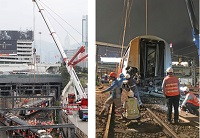Wangfoong managed to provide heavy-lift equipment to recover an incident happened during normal working peak hours. With lifting method at the site, we supervised the whole lifting and avoided overhead cables and gantry, performed lifting smoothly for the derailed trains with supervision of using two units of 500t mobile cranes and rigger team. After more than 17 hours of rescue, the three derailed trains were put back onto the tracks, and parts of the train services resumed after the incident.