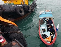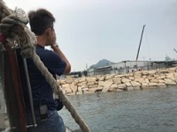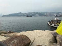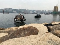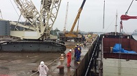 - Transport steel rebars by derrick barge with tug boat to Hong Kong mid-stream next to outboard mother vessel