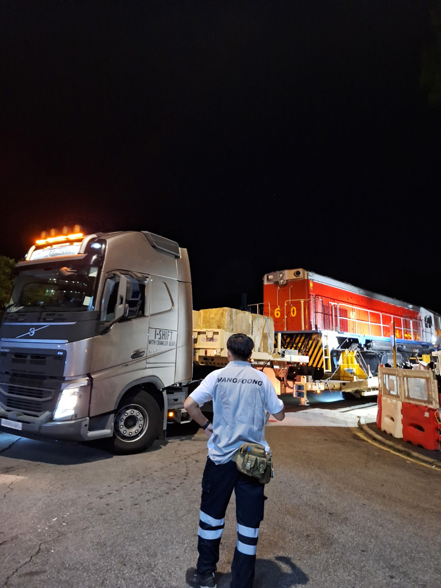 Wangfoong (Hong Kong) successfully delivered the exhibit ¡§Diesel Electric Locomotive No.60¡¨, which served the East Rail Line for almost half a century (1974-2021) from MTR Lo Wu Locomotive Running Shed to Tai Po Railway Museum on September 2023. Our project team spent over a year of time on planning and preparation, overcame the numerous challenges from bad weather, unforeseeable road condition and site restrictions. With site constraint, we performed skidding at museum site to position the main body, and finally with tandem lifting to put the body and bogies back together.