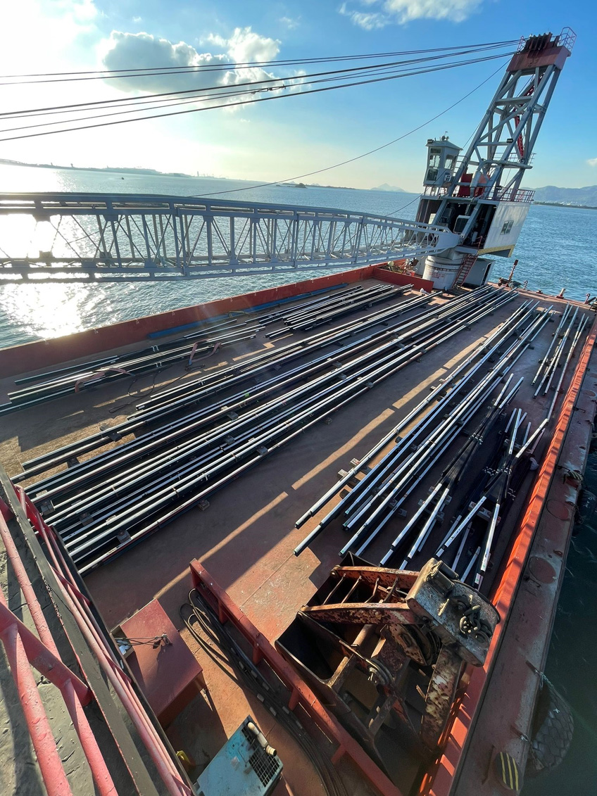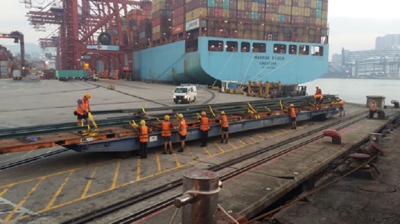 Being the logistics partner with MTR, one of the regular tasks is the odd-size cargo delivery. There was a shipment for 27.5 meters long rail ex Antwerp to Hong Kong by RoRo vessel. The project scope was to deliver this overlength rail to client's site upon vessel arrival. We arranged barge delivery instead of land transport due to road limitation. We successfully collected the rail from shipside to client's berth by our own barge, arranged lifting and land delivery to the site with lorry cranes and special trailer.