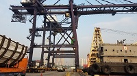 - Loading of long rails on trailer with tandem lifting, and onward inland transportation